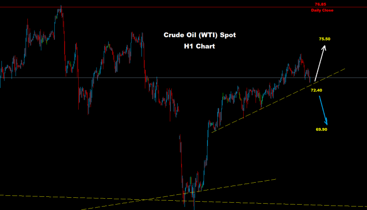 تظهر مؤشرات التداول اليومي مستويات دعم حول مناطق 72.40 حيث من المتوقع أن يستمر التقدم نحو 75.50 طالما استمر السوق في الاحتفاظ بالتداولات فوق 72.40