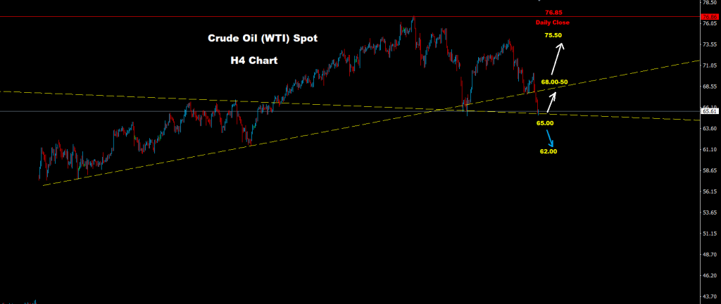 تمكن النفط الخام من إضافة المزيد من الانخفاض حيث تمكن من اختبار منطقة الدعم الثانية 65.00