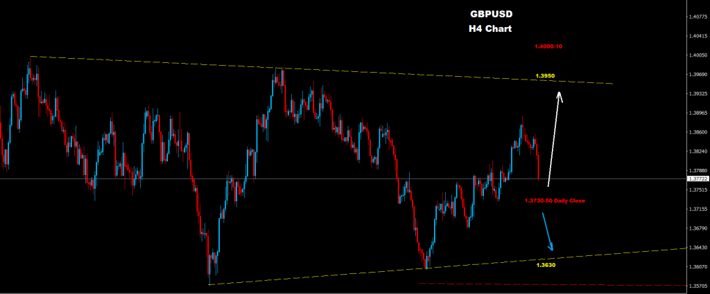 دعم متوسط حول 50-1.3730 حيث طالما استمر السوق في الثبات على الإغلاق اليومي فوقها، فإن الموجة الصاعدة لا تزال قائمة نحو أهداف 1.3950.
