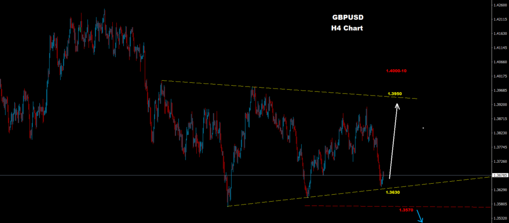 كما نرى على الرسم البياني، يبدو أن السوق يبني تشكيل مثلث تداولي حيث قد يعطي الدعم 30-1.3620 فرصة لتقدم آخر نحو الهدف 1.3950