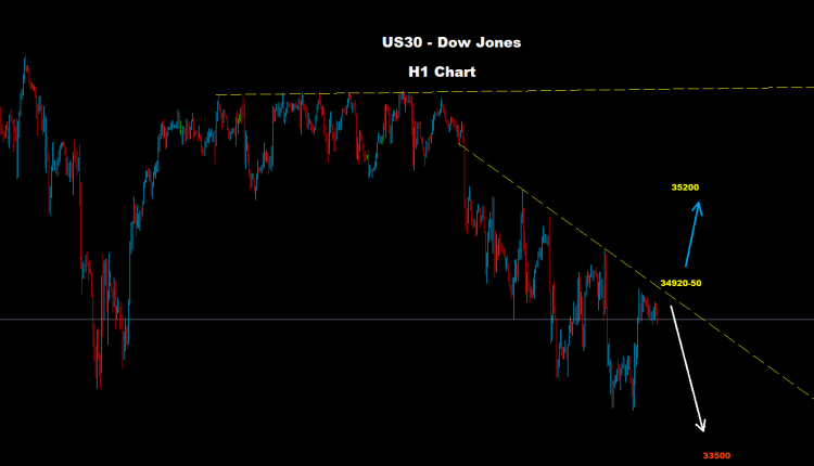 فوق 34950، قد تضرب فرصة للتقدم أبعد السوق حيث توجد مقاومة المدى القصير عند 35200.