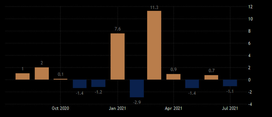 تشير التوقعات إلى تراجع مبيعات التجزئة خلال أغسطس بنسبة 0.8% على أساس شهري بعد أن تراجعت بنسبة -1.1% خلال يوليو، الأمر الذي قد يزيد من مخاوف تباطؤ معدل الاستهلاك وبالتالي النمو الاقتصادي بشكل عام.