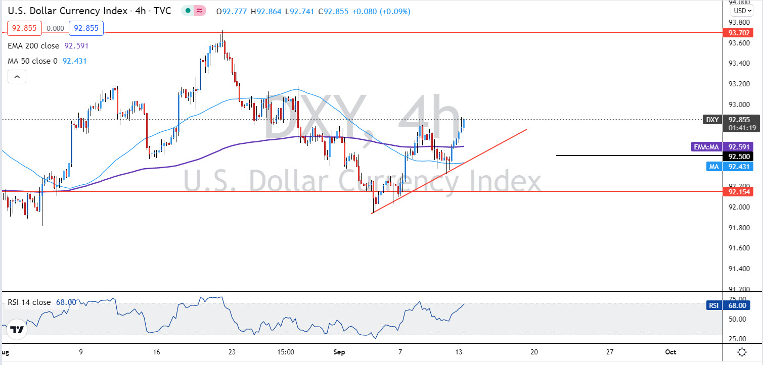 وتترقب الأسواق هذا الأسبوع عدد من البيانات الاقتصادية الهامة، على رأسها بيانات التضخم ومبيعات التجزئة يومي الثلاثاء والخميس في الساعة 12:30 م بتوقيت جرينتش. ومن المتوقع أن تتباطأ وتيرة ارتفاع التضخم وأن تتراجع مبيعات التجزئة خلال شهر أغسطس الماضي، ولهذا في حال جائت القراءة دون المتوقع فقد يعزز ذلك من مخاوف الأسواق بأن يتمهل الفيدرالي في الإعلان عن تقليل حجم برنامج مشتريات الأصول، وبالتالي الضغط على الدولار.
