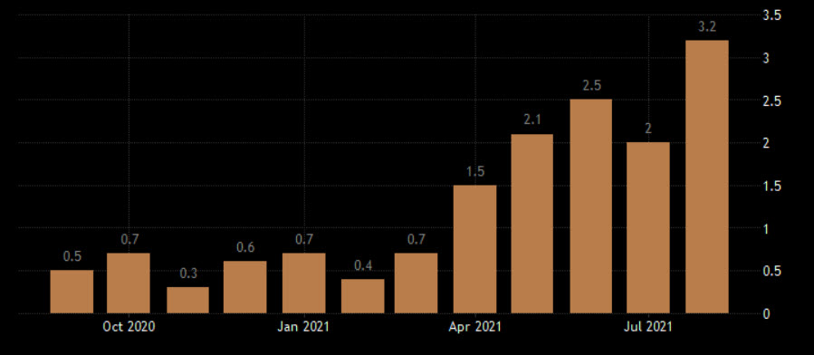 إلا أنه في حقيقة الأمر فإن ارتفاع التضخم بشكل قوي خلال الشهر الماضي على أساس سنوي يرجع إلى عوامل مؤقتة. ومن المتوقع أيضاً أن يسجل التضخم ارتفاعاً بنسبة 4% بنهاية العام الجاري بأعلى من التوقعات الحالية.