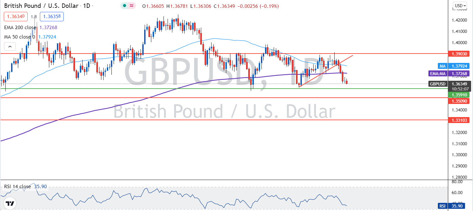 من المتوقع استقرار تداولات الزوج على المدى الطويل فيما بين المستوى 1.39 و 1.36 ولكن على المدى القصير، قد يختبر الزوج مستوى الدعم 1.3590 وفي حال فشل الزوج في كسر المستوى 1.3570 فمن المتوقع أن نشهد ارتداد من هذا المستوى.