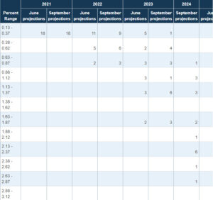 توقعات أعضاء الفيدرالي لمعدل الفائدة خلال عامي 2022 و 2023