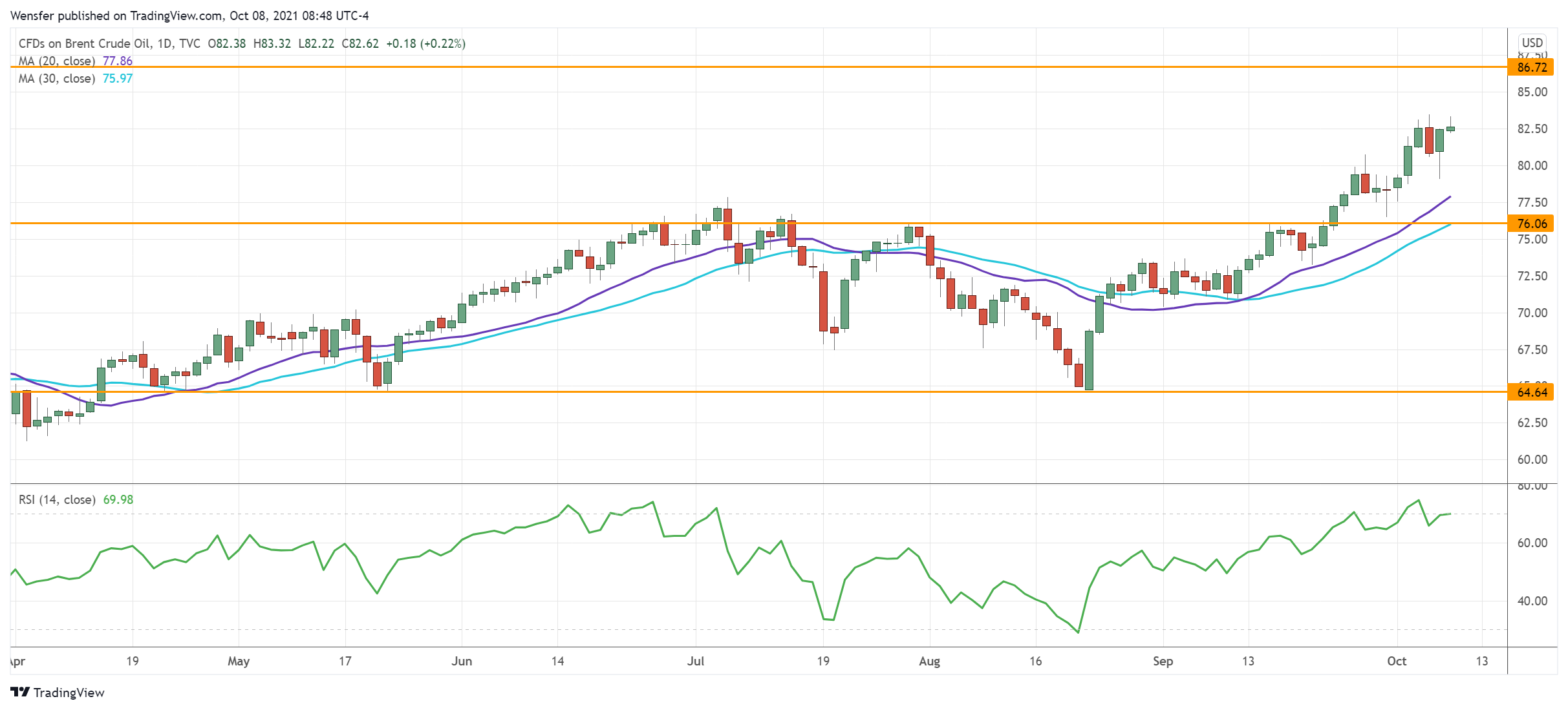 بيد أن زيادة أوبك المحكمة من إنتاج النفط لتعويض نقص الإمدادات العالمي ستستمر في دعم الاتجاه الصاعد. وقد تجاهلت المنظمة دعوات من مستوردين رئيسيين لمزيد من زيادة الانتاج، لكنها ستلتزم بدلاً من ذلك بزيادة مخططة في الإنتاج تقوم على الاعتدال والتدرج في الزيادة. وسيكون المستوى ٨٦.٧٠ هو الحاجز الرئيسي التالي في مسيرة الصعود مع وجود المستوى ٧٦.٠٠ كدعم.