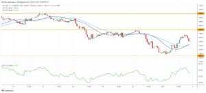 يكافح مؤشر “ستاندرد أند بورز ٥٠٠” مع تفشي المخاوف بشأن التباطؤ الاقتصادي. ويدل التقاطع الهابط للمتوسط المتحرك على الرسم البياني اليومي على تحول المعنويات لتصبح سلبية.