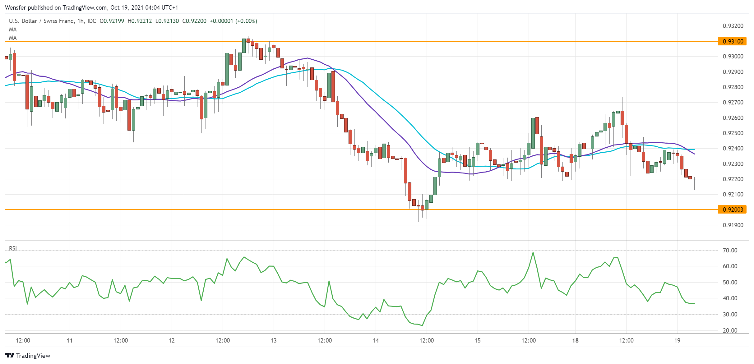 ووضع الانخفاض ما دون منطقة الطلب قرب ٠.٩٢٣٠ المشترين تحت ضغط. كما أثار وجود مؤشر القوة النسبية في منطقة ذروة البيع أصحاب عقلية شراء الانخفاضات عند السعر ٠.٩٢٠٠ وهو مستوى الدعم الجديد.