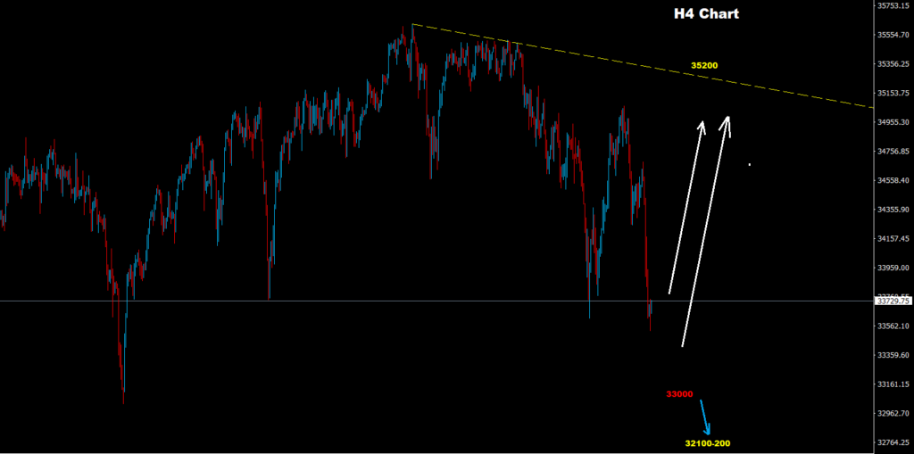 تحت 33000 قد يكون للسوق فرصة لموجة هبوط أبعد نحو منطقة 200-32100.