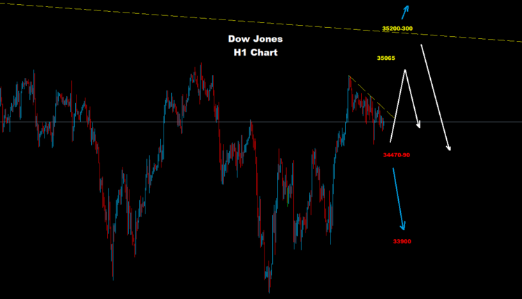 تحت 34470 من المتوقع المزيد من الانخفاض باتجاه 33900 وربما أقل.