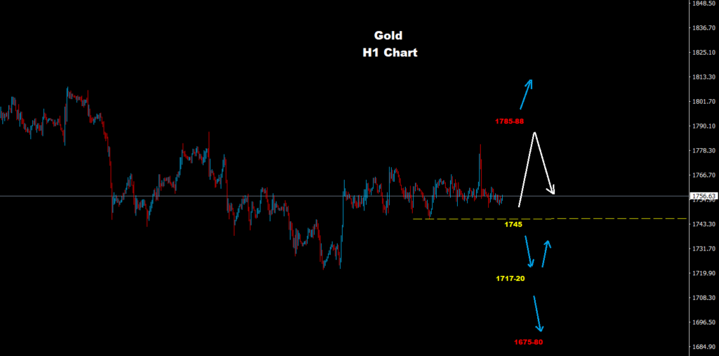 تحت 1745 فإن مزيد من الانخفاض يمكن توقعه حيث يتواجد الدعم عند 20-1717 و 1700.