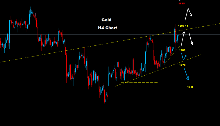 لا يزال الذهب يواجه الدعم 1780 حيث إن بقاء السوق فوق منطقة الدعم تلك قد يدفع باستمرار فرص الصعود نحو مناطق 35-1830.