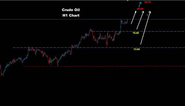 تمكن النفط الخام من الحفاظ على الموجة المتقدمة كما أشرنا الأسبوع الماضي حيث يقترب السوق من الهدف 82.70.