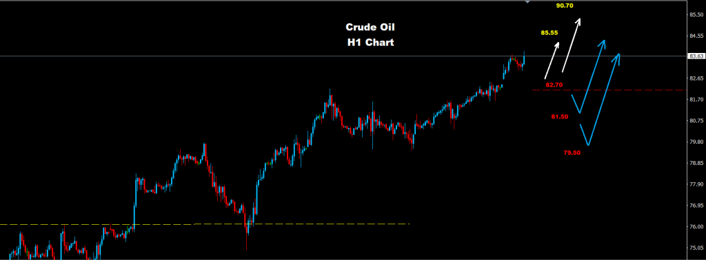 تمكن النفط الخام من الحفاظ على التقدم نحو الهدف الثاني 82.70 وما فوق.