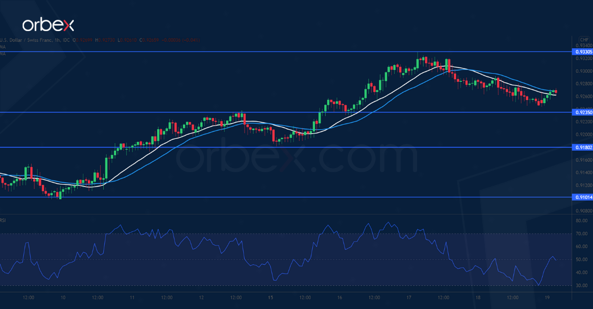 وتسببت عمليات جني الأرباح للمشترين خلال اليوم والتي تقودها حالة ذروة الشراء التي أظهرها مؤشر القوة النسبية في تراجع محدود. وقد يرى المشترون من هذه الانخفاضات فرصة للشراء من سعر منخفض. ويمكن أن تتواجد العروض قرب مستوي المقاومة الذي أصبح دعم عند السعر ٠.٩٢٣٥.