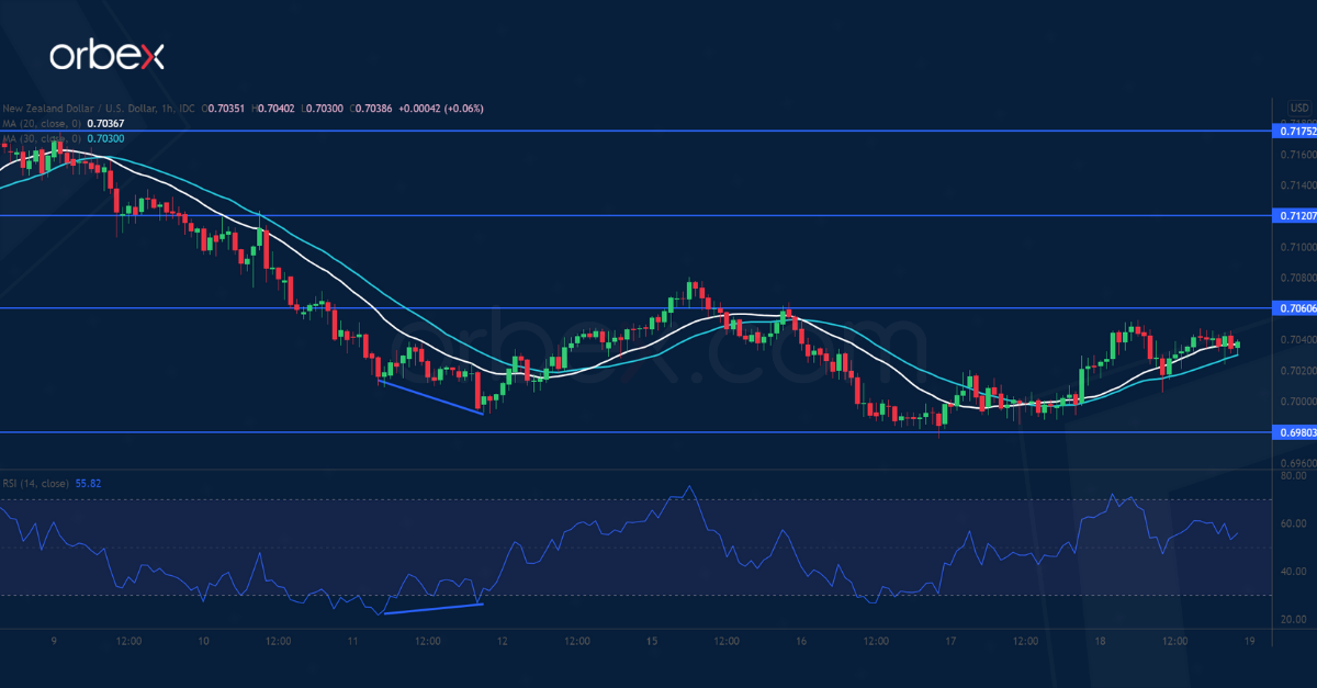 ارتفع الدولار النيوزيلندي في وقت يتهيأ فيه المتداولون لرفع سعر الفائدة من قبل بنك الاحتياطي النيوزيلندي الأسبوع المقبل. ومن منظور الرسم البياني اليومي، نجد أن الزوج قد ارتد عن منطقة الطلب بالقرب من المستوى النفسي ٠.٧٠٠٠.
