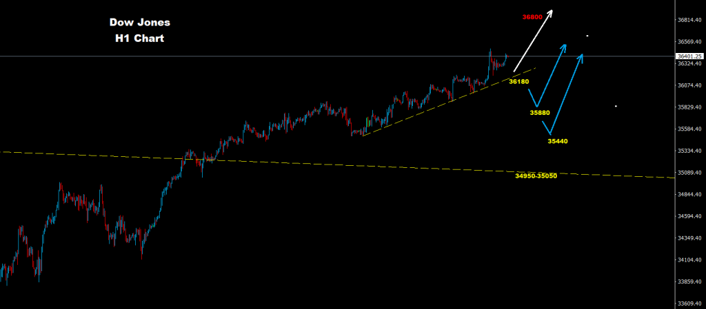 تحت 36180 يوجد دعم آخر عند 35880 و35440 حيث قد يستعيد أحد هذين الدعامين موجة الاتجاه الصاعد مرة أخرى.