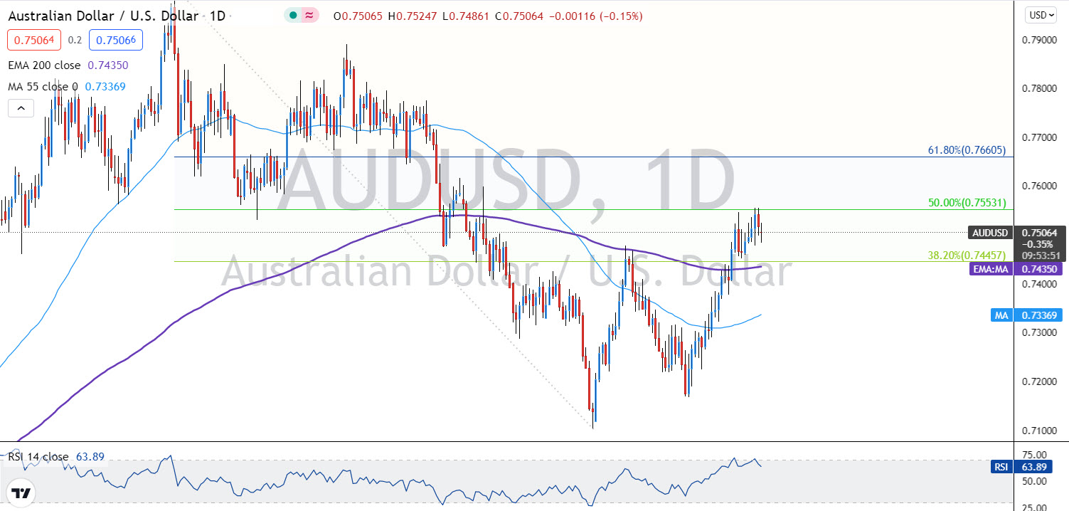 يلاحظ على الإطار الزمني اليومي تكوّن نموذج قاع مزدوج مع استقرار التداولات أعلى المتوسط المتحرك 200 مما يدعم النظرة الشرائية على المدى المتوسط بشرط استقرار تداولات الزوج الأسترالي دولار أعلى المستوى 0.7400. ومن المتوقع مواصلة الارتفاع في حال تحقق السيناريو الإيجابي لقرارات البنك إلى المستوى 0.7660 المتمثل في مستوى تصحيح فيبوناتشي نسبته 61.8%.