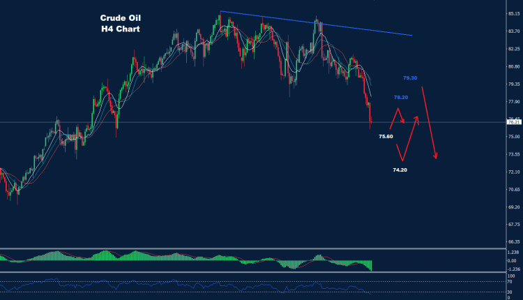 تمكن النفط الخام من الحفاظ على موجة التراجع و الهبوط نحو الأهداف 78.20 و 76.80 كما أشرنا من قبل.