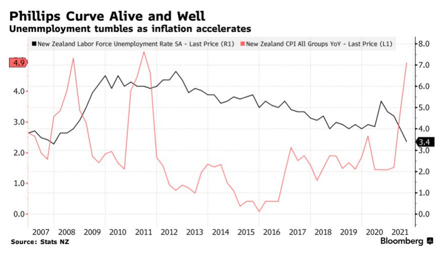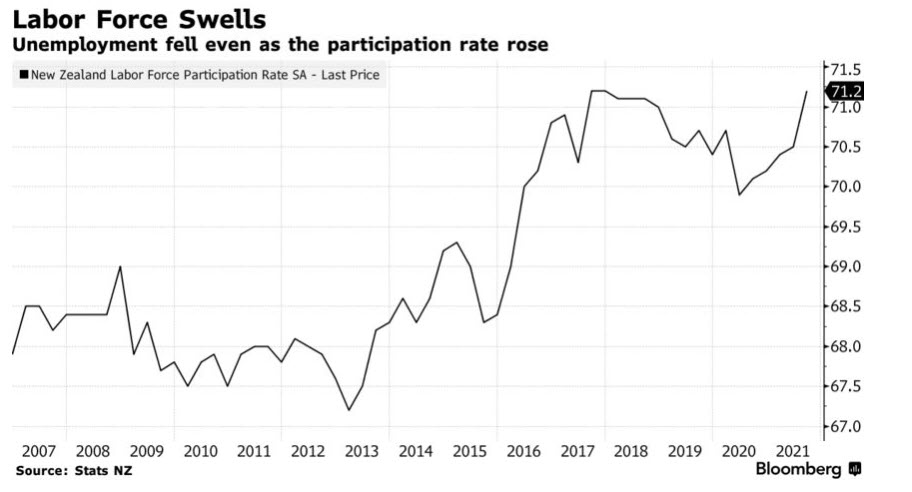 الجدير بالملاحظة زيادة القيود على الهجرة في أعقاب أزمة كورونا زاد من الطلب على العاملين المحليين ودعم زيادة الأجور وبالتالي ساعد ذلك على تراجع معدلات البطالة وتسارع معدلات التضخم، وكانت تلك العوامل داعمة لرفع الاحتياطي النيوزلندي معدلات الفائدة من 0.25% إلى 0.50% خلال اجتماع 6 أكتوبر الماضي.
