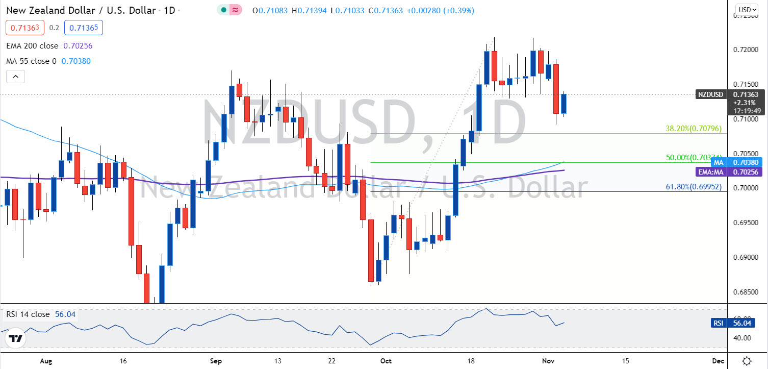 وتشير توقعات الأسواق إلى قيام البنك الاحتياطي النيوزلندي برفع الفائدة مرة أخرى بمقدار 25 نقطة أساسية خلال الاجتماع القادم في 24 نوفمبر، بينما تبلغ احتمالات رفع الفائدة بمقدار 50 نقطة أساسية 40%، خاصة بأن البنك قد أشار خلال اجتماع الأخير بأنه قد يتخذ قرار آخر برفع الفائدة لاحتواء معدلات التضخم المتسارعة.