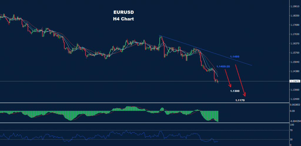 تواجه السوق الآن منطقة المقاومة الأولى حول 20-1.1400 بينما منطقة المقاومة الثانية حول 1.1495-1.1515 حيث طالما استمر السوق في الاحتفاظ بالصفقات أدناه، فإن المزيد من الانخفاض نحو 1.1300 و1.1170 سيكون متوقعاً.