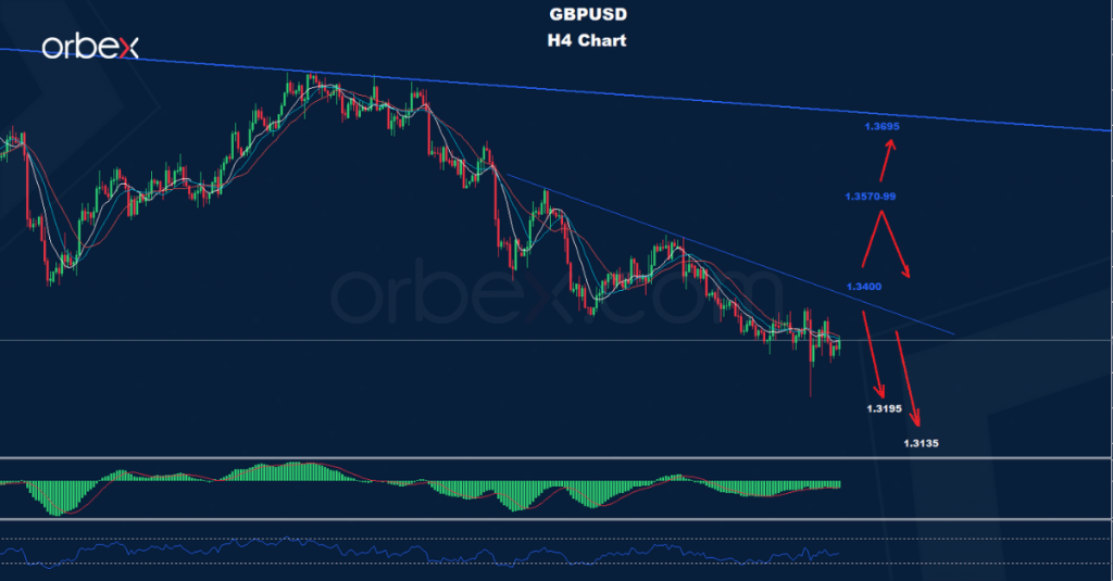 لا يزال الجنيه الإسترليني متماسكاً بالتداولات أسفل خط الاتجاه الهبوطي كما نرى على الرسم البياني حيث انخفضت منطقة المقاومة نحو 1.3400.
