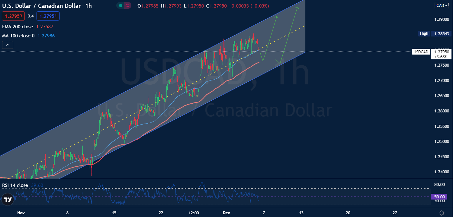 يجري تداول الزوج الدولار/كندي أعلى المتوسط المتحرك 100 على الإطار الزمني الساعة وقناة سعرية صاعدة مما يدعم النظرة الشرائية على المدى القصير. ويوفر نطاق المستوى 1.2750، وتظل النظرة الشرائية قائمة باستهداف 1.2900 ما لم يتم كسر القناة السعرية.