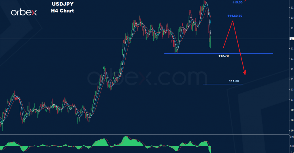 كما نرى على الرسم البياني ، يواجه السوق الآن منطقة دعم حول 112.70 حيث قد تدفع هذه المنطقة لتصحيح ارتدادي نحو منطقة 80-114.60 قبل أن تضرب موجة هبوط أخرى نحو 50-111.30