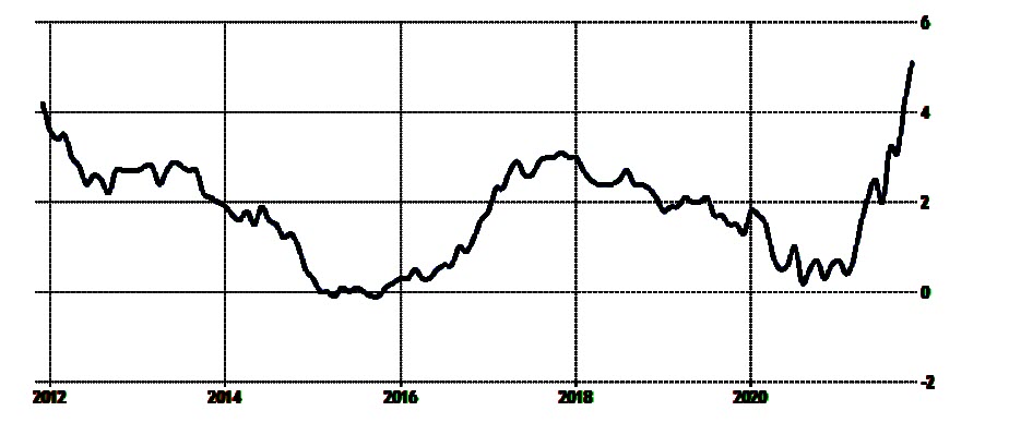 بلغت معدلات التضخم السنوية في المملكة المتحدة 5.1% وهو أعلى مستوى لها منذ سبتمبر 2011.
