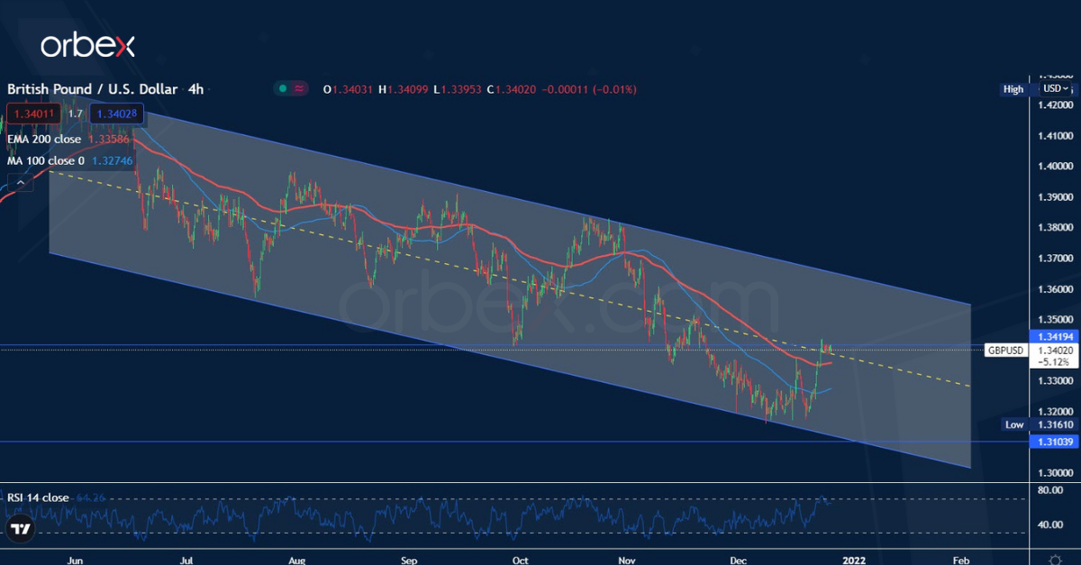 وقد جاء قرار بنك إنجلترا برفع الفائدة خلال اجتماعه الشهر الجاري مفاجئاً للأسواق التي توقعت أن يقوم البنك برفعها في فبراير 2022 وذلك بعد تزايد عدد الإصابات، مما قد يدفع الحكومة البريطانية إلى فرض قيود إغلاق على الأنشطة الاقتصادية. ولكن يبدو أن بنك إنجلترا لم يبالي بمخاوف الأسواق بشأن زيادة أعداد الإصابات خاصة مع تفشي سلاسة أوميكرون الجديدة وفضّل التركيز أكثر على مسار التضخم وسوق العمل.