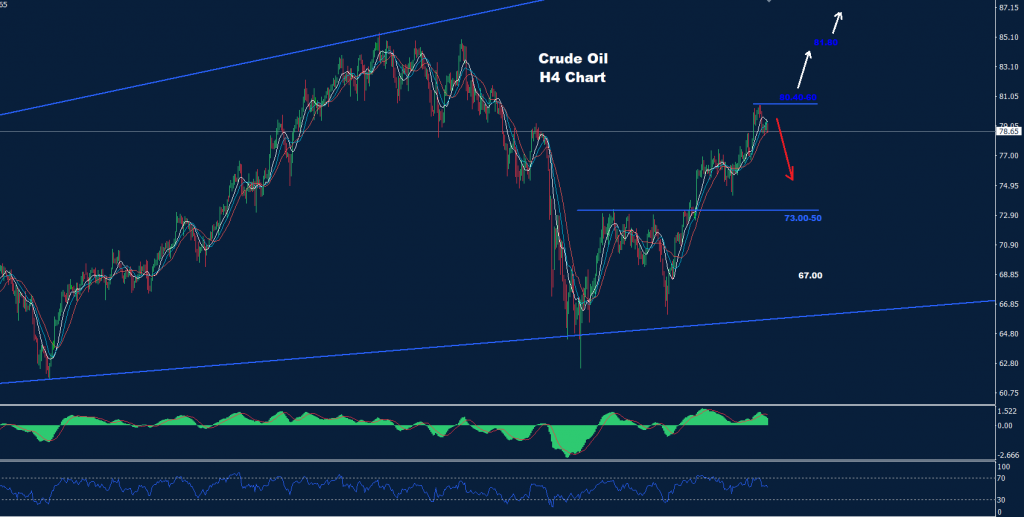 كما نرى على الرسم البياني الجديد لدينا، تظهر المستويات اللحظية مقاومة حول 60-80.40 مما قد يدفع ببعض التصحيح الهبوطي نحو منطقة 76.00 وما دونها.