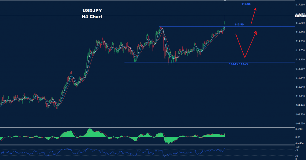 تمكن الدولار الأميركي مقابل الين الياباني اليوم من كسر المقاومة 115.50 حيث يواجه السوق أحد الاحتمالين.