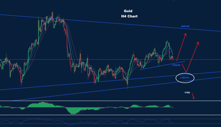 كما نرى على الرسم البياني، يواجه السوق الدعم حول 95-1790 والذي قد يوفر فرصة لتقدم آخر نحو منطقة 50-1845.