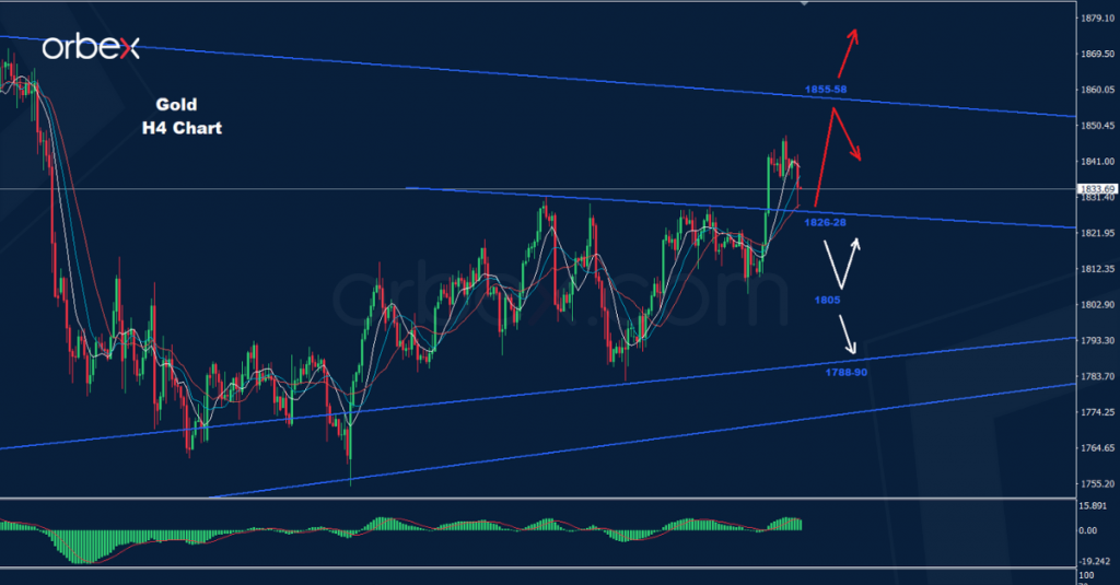 لا يزال هدفنا نحو منطقة 58-1855، بينما تُظهر المستويات اللحظية الدعم الأول حول 28-1826 حيث طالما استمر السوق في الحفاظ على التداولات فوق هذه المنطقة، فلا يزال هناك المزيد من التقدم في متناول اليد نحو 58-1855.