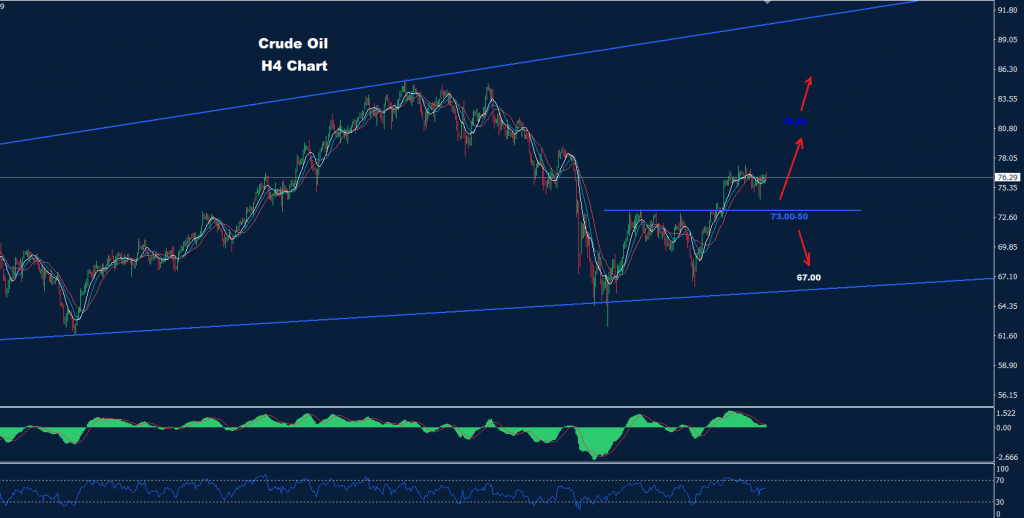 كما نرى على الرسم البياني، يواجه السوق دعماً حول 50-73.00 حيث من المتوقع أن تكون هناك موجة تقدم أخرى نحو 79.20 وما فوق طالما بقيت صفقات السوق فوق هذا الدعم.