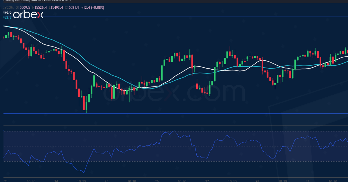 كما أن البائعين قد جنوا بعض الأرباح بعد أن تعمق مؤشر القوة النسبية في منطقة ذروة البيع. ويمكن أن يؤدي الاختراق أعلى ١٥٥٥٠ إلى التهدئة من الضغط السلبي وإجبار المزيد من البائعين على تغطية المراكز، مما يمهد الطريق لارتداد محتمل.