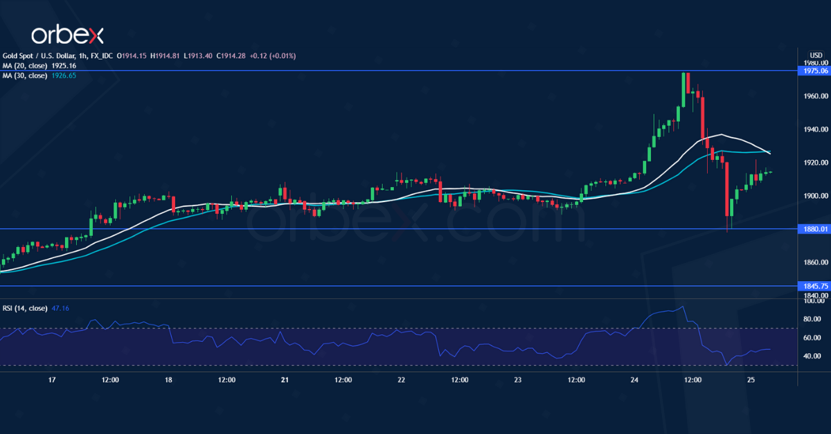 ودفع تداول الزخم السعر صوب أعلى مستوياته في سبتمبر ٢٠٢٠ عند ١٩٧٥ قبل أن يعكس الذهب مساره. وأصبح المستوى ١٨٨٠ هو دعم جديد بعد جني مشتري المدى الأرباح.