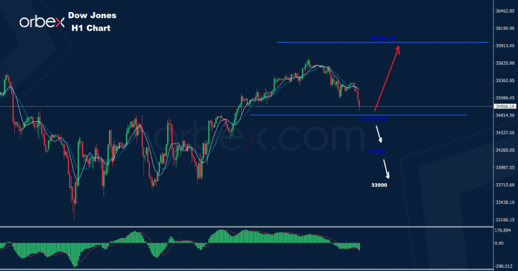 تحت 34750 من المتوقع وجود خطر لحركة هبوط أبعد نحو 34430 و33900.