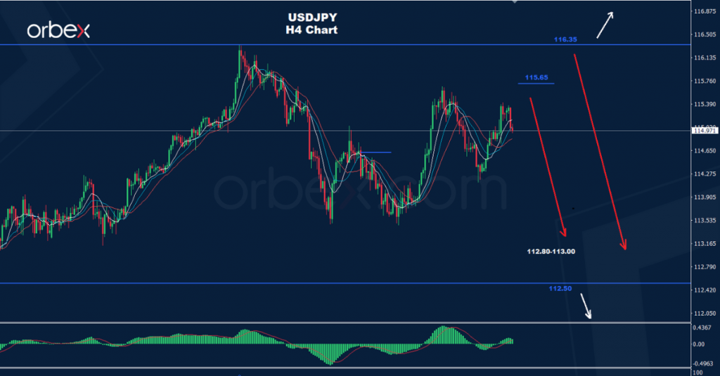 وطالما استمر السوق في الحفاظ على التداولات دون المقاومة 116.35 فإننا ما زلنا نتوقع موجة هبوط أخرى نحو الهدف 112.80-113.00.