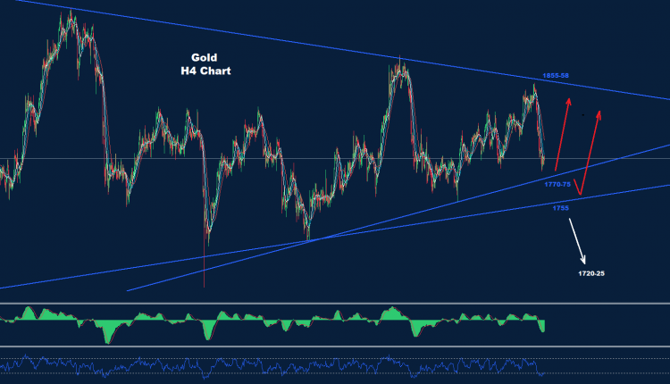 تمكن الذهب من تنشيط هذه الموجة المتقدمة قبل اختبار منطقة الدعم 75-1770.