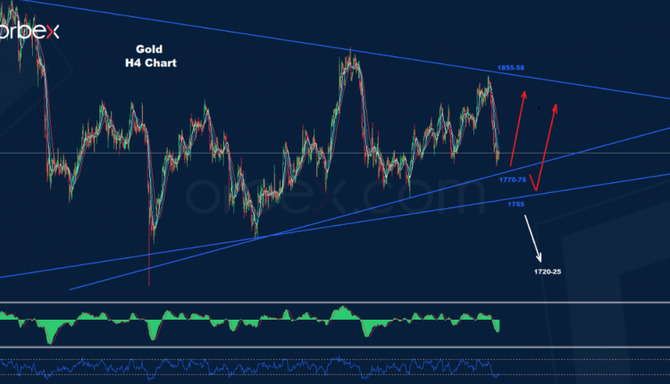 تمكن الذهب من تنشيط هذه الموجة الصاعدة قبل اختبار منطقة الدعم 75-1770