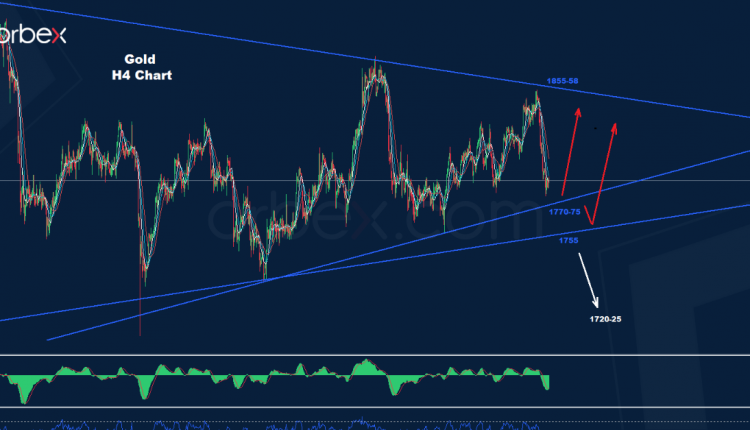 تمكن الذهب من تنشيط هذه الموجة المتقدمة قبل اختبار منطقة الدعم 75-1770.