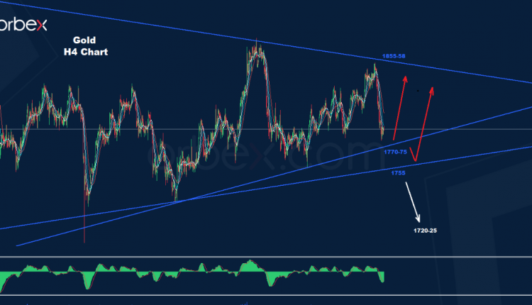 تمكن الذهب من تنشيط هذه الموجة المتقدمة قبل اختبار منطقة الدعم 75-1770.