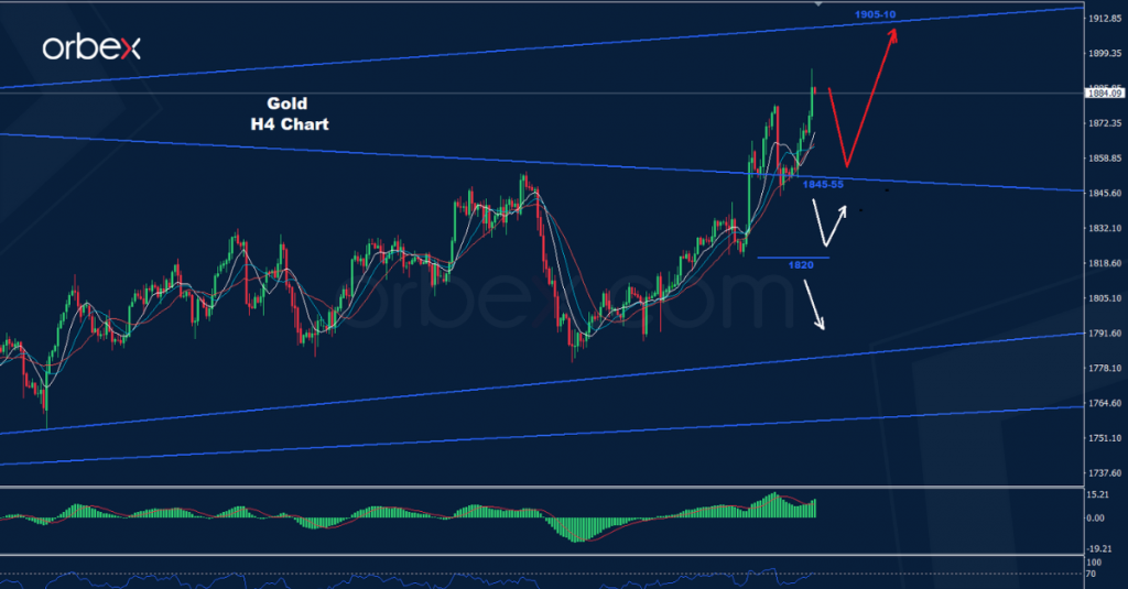 تمكن الذهب من الاحتفاظ بالتداولات فوق 1840 حيث تمكن من الحفاظ على التقدم نحو الأهداف 1877 و 1890.