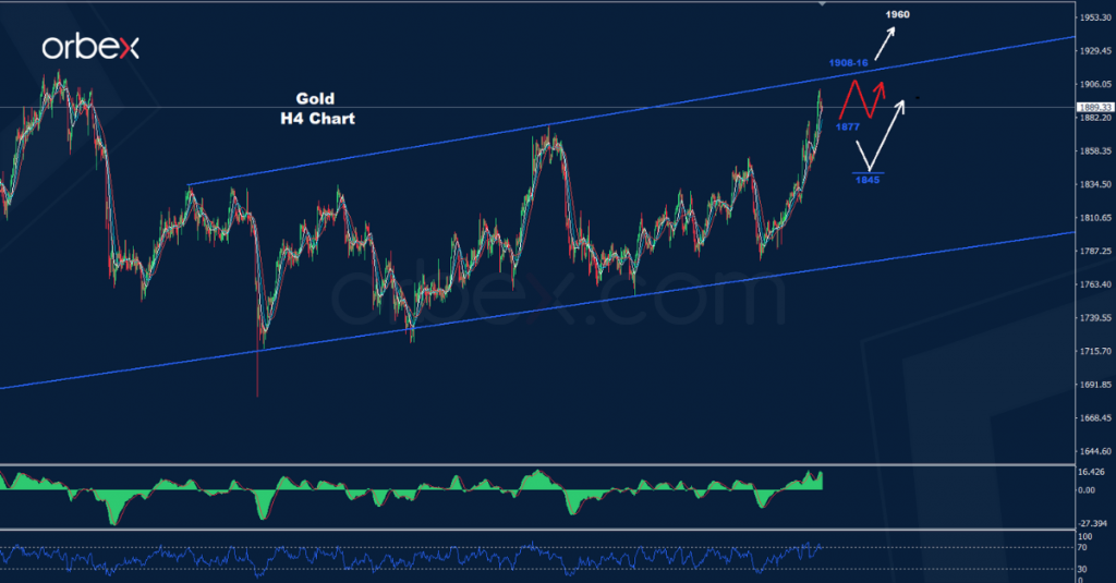 يبدأ مستوى الدعم خلال اليوم من 1877 والذي قد يدفع لمنطقة تداول.