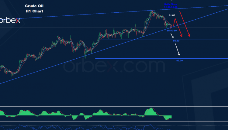 كما نرى على الرسم البياني للمدى اليومي، فإن فرصة مواجهة النفط لحركة تصحيح ارتدادية نحو 91.60 لا تزال قائمة إذا تمكن السوق من الحفاظ على التداولات فوق الدعم 88.50.