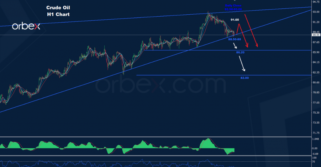 كما نرى على الرسم البياني للمدى اليومي، فإن فرصة مواجهة النفط لحركة تصحيح ارتدادية نحو 91.60 لا تزال قائمة إذا تمكن السوق من الحفاظ على التداولات فوق الدعم 88.50.