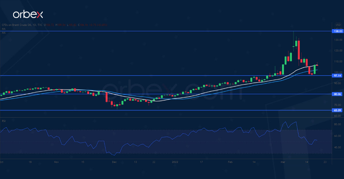 تبقي احتمالية حدوث اضطراب طويل الأمد أسعار النفط مدعومة. ولم تُظهر المحادثات بين أوكرانيا وروسيا أي تقدم يذكر. وتشير أسعار الطاقة المرتفعة إلى أن الأسواق تراهن على الصراع، والعقوبات سيستمران. وتعد روسيا من أكبر مصدري النفط، وحذرت وكالة الطاقة الدولية من حدوث صدمة امدادات في النفط العالمي المترتبة على فقدان الخام الروسي. وفي غضون ذلك، قد تحتدم المحادثات النووية مع إيران خلف الكواليس دون احراز نتيجة، مما يجعل العودة الكاملة للنفط الفارسي أمر غير مؤكد. وارتد خام برنت من ٩٧.٠٠. وقد يدفع السوق الضيق الطلب أعلى القمة عند ١٣٨.٠٠ مره أخرى.